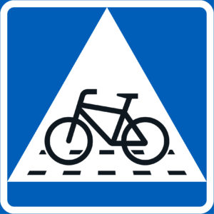 Liikennevalo-ohjatussa tienylityspaikassa merkillä voidaan kuitenkin osoittaa pyörätien jatke, jota ei ole rakenteellisesti korotettu. Merkki voidaan sijoittaa ajoradan oikealle puolelle, yläpuolelle, ajoradalla olevalle korokkeelle tai ajoradan vasemmalle puolelle.