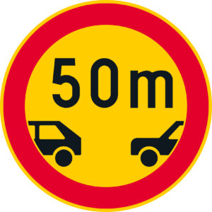 Merkillä osoitetaan, että moottorikäyttöisellä ajoneuvolla on pidettävä edellä kulkevaan moottorikäyttöiseen ajoneuvoon vähintään merkissä osoitettu etäisyys.