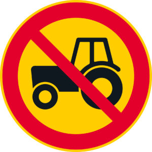 Kielto koskee ajamista traktorilla jonka rakenteellinen nopeus on 60 kilometriä tunnissa tai sitä alempi. Kielto koskee myös ajamista moottorityökoneella ja kevyellä nelipyörällä.