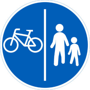 Merkillä osoitetaan rinnakkainen pyörätie ja jalkakäytävä. Merkissä olevat tunnukset osoittavat pyörätien ja jalkakäytävän keskinäisen sijainnin. Muuten on pyörätiestä ja jalkakäytävästä voimassa, mitä merkeistä D4 ja D5 säädetään.