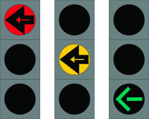 Jos vihreä valo on nuolenmuotoinen taikka punaisessa tai keltaisessa valossa on nuoli mustin ääriviivoin, on valoa noudatettava siten kuin 1–3, 5 ja 7 kohdassa säädetään ajettaessa nuolen osoittamaan suuntaan.