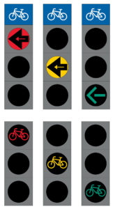 Polkupyöräopastimessa punainen polkupyörän kuva vastaa 1 kohdassa tarkoitettua punaista valoa, keltainen polkupyörän kuva 3 ja 7 kohdassa tarkoitettua keltaista valoa ja vihreä polkupyörän kuva 2 kohdassa tarkoitettua vihreää valoa. Polkupyöräopastimena voidaan käyttää myös 4 ja 7 kohdassa tarkoitettua nuolivalo-opastinta, jossa nuolikuvio on polkupyöräkuvan yhteydessä.