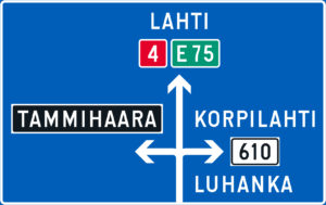 Vihreä pohjaväri osoittaa moottoritien tai moottoriliikennetien suunnan. Musta pohjaväri osoittaa yksityisen tien suunnan. Valkoinen pohjaväri osoittaa paikalliskohteen. Keltainen pohjaväri ja musta teksti osoittaa kiertotien tai tilapäisen liikennejärjestelyn. Punaisella vinoristillä peitetty kohde osoittaa, että reitti kyseiseen kohteeseen on tilapäisesti pois käytöstä.