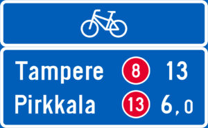 Merkeissä F19–F23 voidaan käyttää reittitunnuksia ja muita vapaamuotoisia tunnuksia. Jalankulkualueella voidaan käyttää myös muita reitti- ja paikannusmerkintöjä. Tilapäisissä liikennejärjestelyissä merkin pohjaväri on keltainen.
