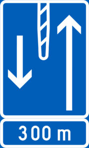 Merkillä osoitetaan ajokaistajärjestelymerkkiä seuraavassa risteyksessä tai tienkohdassa, jonka ajokaistajärjestely poikkeaa tavanomaisesta. Merkin nuolikuviota sovelletaan tilanteen mukaan. Tilapäisissä liikennejärjestelyissä merkin pohjaväri on keltainen.
