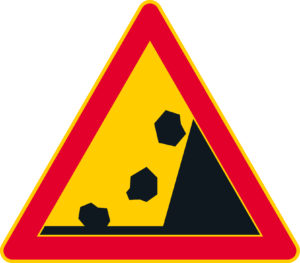 Merkillä voidaan varoittaa tienkohdasta, jossa tielle pudonneista tai putoavista kivistä saattaa aiheutua vaaraa liikenteelle.