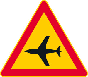 Merkillä voidaan varoittaa tienkohdasta, jossa matalalla lentävät lentokoneet äänellään tai äkillisellä ilmestymisellään saattavat vaarantaa liikennettä.